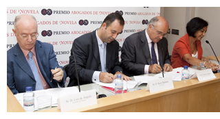 La primera convocatoria del Premio de narrativa Abogados de Novela 2010 ha sido presentada por el presidente de la Mutualidad, Luis de Angulo, junto a Carlos Carnicer, presidente del Consejo General de la Abogacía Española, Jesús Badenes, director general de la División de Librerías del Grupo Planeta y Carmen Fernández de Blas, editora de MR Ediciones.