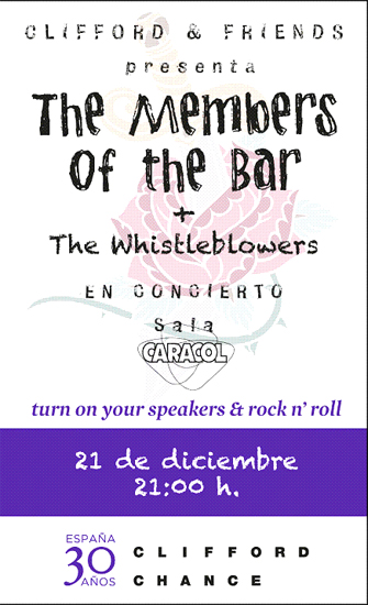 Cierra esta campaña con un concierto a beneficio de la Fundación Balia hoy 21 de diciembre en la sala Caracol de Madrid cuyos fondos se destinará al Aula Clifford Chance en el Centro Balia Tetúan donde se trabaja con menores entre 3 y 12 años cuyas familias no están o no pueden atender sus necesidades básicas cuando salen del colegio: los llamados “niños de la llave”. El concierto lo ofrece el grupo "The Members of the Bar", banda de rock integrada por músicos-abogados de Clifford Chance y otras firmas internacionales.
