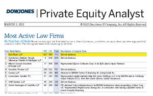 La firma de abogados internacional DLA Piper ocupa el primer puesto mundial en el asesoramiento legal de operaciones de Private Equity -Capital privado- y Capital Riesgo (por número de operaciones negociadas y cerradas en 2011) en el prestigioso ranking anual Dow Jones Private Equity Analyst.