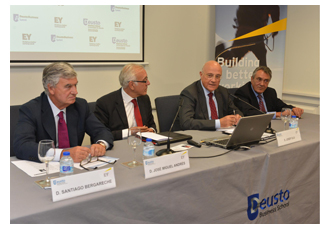 Durante su participación en el ciclo de conferencias ‘La economía vista desde el sector financiero’, puesto en marcha por Deusto Business School con el patrocinio de EY (antes Ernst & Young), el presidente del Banco Sabadell, Josep Oliu, ha hablado sobre la actual coyuntura económica internacional, analizando el proceso de recuperación cíclica que, si bien con cambio de modelo e importantes reformas estructurales, están viviendo las economías desarrolladas, así como los síntomas de agotamiento de modelo que experimentan las economías emergentes más importantes. Oliu se ha referido asimismo al cambio de modelo económico que está impulsando Estados Unidos “para potenciar el sector exterior frente al consumo doméstico” y a Japón, donde las políticas puestas en marcha permiten luchar contra la deflación e impulsar la actividad. En relación con los países emergentes, ha destacado que, en un entorno de menor liquidez global, “los países que aceleren las reformas estructurales y los que mejor soporten los shocks externos serán los que destacarán”. En este sentido, se ha referido a Latinoamérica, donde “la correcta gestión de la política económica y la fortaleza institucional será un factor fundamental para discriminar entre países, más allá del comportamiento a corto plazo del ciclo económico”. España: punto de inflexión y reformas pendientes Respecto a nuestro país, ha afirmado que la economía española ya ha alcanzado su punto de inflexión y que “lo peor en términos de actividad ha quedado atrás”. Tras analizar la mejora de las principales magnitudes macroeconómicas de nuestro país (crecimiento del PIB, evolución del sector exterior, incremento de las inversiones extranjeras,…) ha manifestado que España destaca, entre los países europeos, “por su esfuerzo reformador, si bien aún quedan retos pendientes como la mayor eficiencia en la función pública y las reformas en el sistema educativo“. Para Josep Oliu, el sistema educativo español debe “encajar mejor con las necesidades del mercado laboral” y también hay que “completar el ajuste en términos de consolidación fiscal y desapalancamiento del sector privado”. Por su parte, Santiago Bergareche, presidente de la comisión delegada de Deusto Business School en Madrid y copresidente del consejo de administración de Cepsa, ha apuntado que “en momentos turbulentos como los que vivimos, las escuelas de negocios tienen que dar lo mejor de sí mismas en su proyección social y convertirse en lugares de producción del pensamiento empresarial más avanzado”. Bergareche ha añadido que “toda la sociedad tiene que sacar hoy lo mejor de sí misma para que cada cual aporte su granito de corresponsabilidad para salir de la crisis y un modo de aportar, como hacemos hoy, es dialogar sobre la situación actual sus perspectivas y sus soluciones. Tras las palabras de Bergareche ha intervenido el presidente de EY, José Miguel Andrés, quien ha asegurado que “la economía española ha tocado fondo y los mercados ya están asumiendo un cambio positivo en los datos macroeconómicos, tanto a nivel europeo como en España que ya está saliendo de la recesión. Nuestros costes de financiación se han reducido, nuestra productividad ha mejorado notablemente y las exportaciones están creciendo a buen ritmo pero tenemos el reto de aprovechar este impulso procedente del sector exterior para recuperar nuestra demanda interna, incrementar el consumo y reducir la elevada tasa de paro”. En la clausura, el director general de Deusto Business School, Manuel Escudero, ha señalado que “existe una notable coincidencia en el diagnóstico respecto a que 2014 será el año en el que España vuelva a crecer, si no existen sobresaltos en economías como la estadounidense o la china, y que en 2015 se comenzará a aliviar la lacra social del desempleo. Esa nota de optimismo tiene razones fundadas, y hemos de prepararnos para recuperar el terreno perdido en todos los órdenes de la vida española: el empresarial, el económico y también el social. Deusto Business School está saliendo fortalecida de esta crisis, con el mantenimiento de nuestros programas tradicionales, el lanzamiento de nuevos másteres universitarios, el crecimiento de programas y actividades formativas en áreas como la de Innovación o el nuevo sector de Salud, y los notables crecimientos que estamos experimentando en nuestros programas de formación para empresas”. Manuel Escudero ha concluido invitando a los asistentes a acudir a las próximas convocatorias del ciclo organizado por Deusto Business School con el patrocinio de EY.