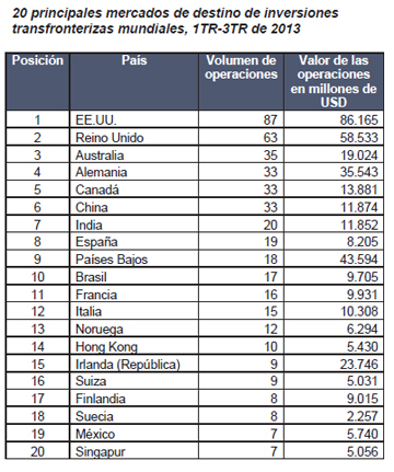 Según el último M&A Index de Allen & Overy, el mercado de M&A emitió señales dispares en el tercer trimestre: si bien el total de operaciones anunciadas fue de 458, un 22% menos que en el mismo período del 2012, su valor se incrementó en un 13% hasta los 529.000 millones de USD. Ello obedeció, en gran medida, a la venta por parte de Vodafone del 45% que ostentaba en Verizon Wireless por 130.000 millones de dólares (la tercera mayor operación corporativa de la historia). Se advirtió también un trasvase de flujos de capital desde mercados emergentes hacia otros más maduros. Los datos reflejan que los mercados emergentes despertaron menor interés entre los inversores de países desarrollados, que han detenido por el momento sus operaciones corporativas mientras evalúan la intensidad de la ralentización económica en estas regiones, así como el impacto de las salidas de capitales provocadas por la decisión de la Reserva Federal estadounidense de reducir sus compras de deuda. En los primeros nueve meses de 2013, el número de adquisiciones realizadas por empresas estadounidenses y europeas en las regiones emergentes se redujo un 35%, mientras que su valor cayó un 43%. Aunque los temores en EE.UU. en torno a su presupuesto y techo de deuda, unidos al aplazamiento de la retirada de los estímulos cuantitativos, han despertado inquietud en los mercados, la operación de compra de Verizon y la adquisición por parte de Microsoft del negocio de telefonía móvil de Nokia por 7.200 millones de dólares, ponen de manifiesto la elevada confianza existente entre los órganos de gobierno de las compañías estadounidenses. Reino Unido fue el segundo mercado más atractivo para los compradores extranjeros (63 operaciones por un importe total de 58.500 millones de dólares), lo que denota confianza en una eventual recuperación de su economía apoyada en las medidas de respaldo monetario anunciadas por el nuevo gobernador del Banco de Inglaterra. Andrew Ballheimer, codirector del área de práctica de operaciones corporativas internacionales de Allen & Overy, comenta: “Los datos sugieren un trasvase de flujos de capital desde los mercados emergentes a otros más maduros; con todo, pensamos que esta tendencia acabará pronto ya que los consejos de administración siguen convencidos de que sus empresas han de estar presentes en los mercados emergentes para poder 0010023-0016964 MD:3360114.2 2 crecer a largo plazo. Los inversores parecen haber aceptado ya que la Fed reducirá su apoyo a la economía conforme su recuperación vaya afianzándose de forma progresiva.” Íñigo Gómez-Jordana, socio director de la oficina de Madrid, señala: “Es importante destacar que entre los 20 mercados principales de inversión, España ocupa el octavo lugar, detrás de China y Canadá. Esperamos que la actividad cobre fuerza en el último trimestre del año y al comienzo de 2014.” El M&A Index incluye comentarios y análisis de mercado de los socios de Allen & Overy, y está avalado por análisis trimestrales de terceros independientes acerca de los diferentes tipos de operaciones de M&A mundiales (con un valor unitario superior a 100 millones de dólares), así como por análisis de los principales mercados de procedencia de los compradores y de destino de las adquisiciones. Entre las tendencias internacionales que se desprenden del último informe, cabe citar las siguientes: •Determinadas prácticas tributarias agresivas están ahora más que nunca en el punto de mira de la opinión pública y de los gobiernos, lo que expone a las empresas a un considerable riesgo reputacional. •Aunque el volumen de operaciones se mantiene relativamente bajo en Europa Occidental, hay indicios de un próximo repunte de las mismas, especialmente en Alemania y Reino Unido. Otras economías, como la italiana, afectada por un nuevo episodio de inestabilidad política, han quedado rezagadas. •El sector de telecomunicaciones fue el sector que más destacó en el trimestre, registrando su mayor valor en operaciones desde 2007 y una avalancha de transacciones de perfil alto, como la venta del negocio de telefonía móvil estadounidense de Vodafone a Verizon Communications y la compra de la división de consumo de Nokia por parte de Microsoft.