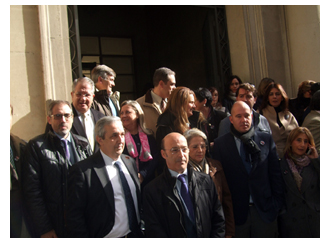 Más de 100 personas han participado en la concentración contra las tasas judiciales impuestas por el Gobierno, que ha tenido lugar esta mañana a las puertas de la Audiencia Provincial de Jaén. La concentración ha sido convocada por el Colegio de Abogados de Jaén, justo cuando se cumple un año de la publicación en el BOE de esta medida. La concentración ha contado con la participación del decano del Colegio de Abogados de Jaén, Vicente Oya; la presidenta de la Audiencia Provincial de Jaén, Elena Arias Salgado; el fiscal jefe de Jaén, Carlos Rueda y el presidente del Federación de Abogados Jóvenes de Andalucía, Julián del Moral, entre otros representantes del ámbito de la Justicia. Durante el acto, el decano del Colegio de Abogados de Jaén, Vicente Oya, ha lamentado que, un año después de la entrada en vigor de las tasas judiciales, la situación de la Justicia no haya mejorado. “Esperamos que los recursos de inconstitucionalidad interpuestos prosperen pero, aún así, el daño ya está hecho”, ha señalado. Además, Oya ha recordado que la recaudación hasta septiembre de las tasas ha sido de 103 millones de euros, muy lejos de los 306 millones previstos para todo el año. “El Ministerio no ha recaudado lo previsto con el establecimiento de las tasas y además el importe de las tasas no se está destinando a mejorar la asistencia jurídica gratuita, como se dijo”, explica. Vicente Oya ha reiterado que la ley de tasas judiciales son “una verdadera barbaridad” y que tiene en contra a todos los operadores jurídicos de España. De hecho, Oya expone que la Ley de Tasas Judiciales ha privado a miles de jiennenses de su derecho a la tutela judicial efectiva, recogido en la Constitución española. “El acceso al sistema judicial se está convirtiendo en un artículo de lujo para muchas personas en España y en la provincia de Jaén”, indica. El manifiesto elaborado con motivo del primer aniversario de la entrada en vigor de las tasas judiciales señala que la Ley ha materializado una injusta barrera para el acceso a la Justicia. También recoge que el objetivo de la Ley de Tasas era y es puramente recaudatorio y disuasorio para el acceso a la justicia de los ciudadanos. El resultado patente y más preocupante es la liquidación del derecho fundamental a la tutela judicial efectiva. “La agilización de la administración de justicia no puede fundamentarse en el establecimiento de barreras económicas, sino en transformación de la actual estructura obsoleta e ineficaz, apostando por la implantación de nuevas formas de organización que fomenten un servicio público accesible y eficaz, destinando las dotaciones y medios adecuados para ello”, indica el manifiesto.