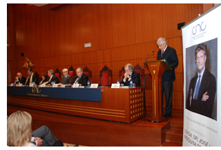 Se presentó el libro “Estudios homenaje a José Luis Mezquita del Cacho” Anoche el Colegio Notarial de Cataluña reunió a más de un centenar de personalidades, compañeros, familia y amigos para rendir un sincero homenaje al notario José Luis Mezquita del Cacho, ex decano del Colegio fallecido hoy justo hace un año. El acto fue presidido por Germà Gordó, consejero de Justicia de la Generalitat de Cataluña, acompañado de Joan Carles Ollé, decano del Colegio. También intervinieron Juan-José López Burniol, quien glosó la figura del homenajeado; Emilio Mezquita García-Granero, notario de Castellón de Ampurias e hijo del homenajeado; Alfonso Cavallé Cruz, decano del Colegio Notarial de las Islas Canarias, quien intervino en nombre de los autores del libro-homenaje editado para la ocasión; y Josep Delfí Guardia Canela, presidente de la Academia de Jurisprudencia y Legislación de Cataluña. El notario de Barcelona Juan-José López Burniol fue el encargado de glosar la figura de José Luis Mezquita, haciendo un amplio repaso tanto a su biografía personal como a su trayectoria profesional y su bibliografía. Así, destacó “su solidaridad humana y su vocación de justicia universal”, y afirmó que en él confluían tres condiciones: “su finísima inteligencia, el ser un depósito de conocimientos y el tener una clara concepción de los problemas jurídicos como conflictos de intereses que resolver desde la ética”. Entre sus obras y escritos remarcó, entre otros, su tesis doctoral, que bajo el título “Seguridad jurídica y sistema cautelar” calificó como “la aportación más destacada en el ámbito de la seguridad jurídica en el siglo XX”, así como el discurso de ingreso a la Academia de Jurisprudencia y Legislación de Cataluña, titulado “La seguridad jurídica documental en la Europa Unidad del siglo XXI,” pronunciado el 1 de diciembre de 1998 y contestado por Lluís Ma Roca Sastre, en el que profundizó en “el fondo de la forma”. López Burniol quiso destacar también “su excepcional formación jurídica de base, una imaginación jurídica desbordante, su compromiso político con la socialdemocracia y su calidez, generosidad, sentido de la amistad y original talante”. Finalizó su discurso afirmando que “hizo muy bien su trabajo y sirvió a la gente y nos quedarán para siempre sus consejos, la información que facilitó, la doctrina y el servicio”. Emilio Mezquita, notario e hijo del homenajeado, pronunció un discurso en representación de la familia y destacó de su padre que “afloró una romántica visión del Notariado”. Remarcó que “puso su empeño obcecado en preservar la esencia de la función notarial” y su concepto de “una justicia que debe servir para contar con una sociedad más justa, libre y equitativa”. Así, destacó la importancia que siempre dio “al notario como equilibrador de las partes en un mercado desigual, a la función notarial en el marco de la seguridad jurídica preventiva y su énfasis en la protección del ciudadano. En definitiva –afirmó- creyó en una justicia al servicio de la libertad individual y de la equidad social”. Por su parte, Josep Delfí Guardia Canela, presidente de la Academia de Jurisprudencia y Legislación de Cataluña, destacó los diversas comunicaciones presentadas en el marco de esta institución, de la que fue elegido académico el 12 de noviembre de 1996, remarcando “su excelencia en los discursos, y la importancia del fondo de la forma, de la seguridad jurídica preventiva y de la función notarial”. Alfonso Cavallé, Decano del Colegio Notarial de las Islas Canarias, quien intervino en nombre de los autores del libro “Estudio homenaje a José Luis Mezquita del Cacho” que se presentó en el transcurso del acto, quiso destacar “el arraigo social del Colegio y de los notarios catalanes en el desarrollo y conservación del derecho civil en Cataluña” y destacó del homenajeado “el ser una persona ejemplar en todos los sentidos”. Cavallé remarcó “su vertiente en el ámbito de la ciencia, aplicando reformas en el reglamento notarial; desde la experiencia, a través de la cercanía y confianza al ciudadano; y desde la consciencia, ofreciendo un servicio social, así como su asesoramiento y defensa de los consumidores y usuarios”. Finalmente, destacó “su ejemplar deber de imparcialidad y el peso de la función pública del notario, su humanidad, amistad, lealtad y vocación de servicio”. Joan Carles Ollé, decano del Colegio Notarial de Cataluña, repasó la trayectoria corporativa de José Luis Mezquita, destacando el haber sido “uno de los primeros líderes del asociacionismo notarial, así como la configuración doctrinal del sistema de seguridad jurídica preventiva y el ser el abanderado de la función social del notario y de la protección de los derechos de los consumidores, ámbito en el que fue pionero.” Quiso destacar igualmente su faceta como preparador y maestro de notarios, como estudioso del Derecho, así como su vertiente humana, con un “fondo generoso, leal y bondadoso. Era un hombre bueno” – concluyó. Al terminar su intervención, el decano del Colegio entregó a la viuda de José Luis Mezquita, Ma Dolores García Granero, una edición especial del libro editado para la ocasión, publicación en la que han participado destacados notarios de toda España, recogiendo estudios doctrinales sobre temáticas en que José Luis Mezquita ha sido un pionero y referente. Finalmente, Germà Gordó, consejero de Justicia de la Generalitat de Cataluña, clausuró el acto recordando que Mezquita fue “un hombre comprometido con su trabajo, con el Derecho, la ley y el bienestar de las personas, buscando siempre soluciones imaginativas, desde una amplia formación, compromiso político y lucha a favor de la justicia social”. Definiéndole como alguien “con un gran sentido humano y del bien colectivo”, destacó la import