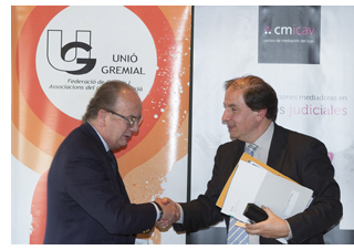El Decano del Colegio de Abogados de Valencia, Mariano Durán y el Presidente de Unión Gremial de Valencia, Francesc Ferrer, han firmado esta mañana en la sede colegial un convenio de colaboración para informar, divulgar y formar sobre la Mediación. Además, a partir de este acuerdo, todos los comercios asociados a Unión Gremial podrán ofrecer el servicio de Mediación para sus clientes, a través del propio Centro de Mediación del ICAV (CMICAV). La primera entrevista informativa será gratuita. La finalidad de este convenio es ofrecer una vía pacífica y eficiente para la gestión de los conflictos que puedan surgir en este ámbito. Ambas entidades, tanto el ICAV como Unión Gremial organizarán acciones formativas o Congresos conjuntamente y desarrollarán actividades de investigación, estudios y análisis sobre el ámbito de la mediación. Asímismo, Unión Gremial (Federación de Gremios y Asociaciones del Comercio Valenciano) facilitará la derivación de asuntos de mediación, en conflictos de todo tipo, al Centro de Mediación colegial. Ambas instituciones elaborarán una acreditación conjunta para identificar, como símbolo y garantía de calidad, aquellos establecimientos asociados a la Unión Gremial que faciliten a sus clientes el acceso al Servicio de Mediación del ICAV. El ICAV presta este servicio a través del Centro de Mediación del ICAV (CMICAV), con abogados profesionales formados en las últimas técnicas de mediación. El mediador pone a disposición de las partes las técnicas y las habilidades necesarias, propias de la mediación, para que puedan alcanzar acuerdos totales o parciales, evitando dejar en manos de la autoridad judicial la solución total o parcial de sus conflictos. En el acto de firma del convenio, el Decano del ICAV, Mariano Durán, ha explicado: “Queremos potenciar el compromiso del Colegio de Abogados por reducir la sobrecarga de Juzgados y Tribunales y también por mejorar la competitividad de empresas y comercios valencianos, resolviendo los conflictos de forma ágil, eficaz y poco costosa”. Actividad del Centro de Mediación CMICAV Los informes de actividad del CMICAV revelan que desde su puesta en marcha, en abril de 2012 hasta el 15 de Febrero de 2014, los abogados mediadores del ICAV han atendido a casi 4.152 valencianos. Se han recibido 583 solicitudes de mediación familiar, 237 expedientes de mediación civil y mercantil, 1.930 solicitudes de intermediación hipotecaria y se han realizado 1.264 asesoramientos totalmente gratuitos. De este global, se han cerrado un total de 938 expedientes; 548 con acuerdo. El ratio de acuerdos conseguidos desde su puesta en marcha en el campo de la intermediación hipotecaria asciende al 61,68%; en el ámbito civil y mercantil, es del 52,46% y la mediación familiar ha obtenido un 47,16% de acuerdos.