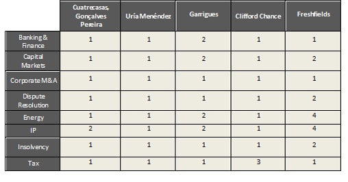 La práctica fiscal vuelve a posicionarse en el primer rango Chambers and Partners, directorio legal referente en el sector, ha posicionado hasta la primera categoría siete de las ocho prácticas jurídicas que analiza en su guía global de 2014. En el capítulo dedicado a España, Chambers reconoce a Cuatrecasas, Gonçalves Pereira como uno de los despachos de abogados de referencia en el mercado. De este modo, dentro del primer rango se encuentran las prácticas de Banca y Finanzas; Mercado de Valores, Mercantil y Fusiones y Adquisiciones, Contencioso; Energía; Reestructuraciones e Insolvencias y; Fiscal. Esta última práctica ha escalado de nuevo hasta la primera posición mientras que Propiedad Intelectual se mantiene en segunda posición. En su desglose para Portugal, Chambers también ha situado en la primera categoría la práctica mercantil y societaria, muy seguida de Banca y Finanzas; Mercado de Valores, Contencioso y; Proyectos. Dentro del ranking global, Cuatrecasas, Gonçalves Pereira ha mejorado posiciones en China por la práctica mercantil internacional. Además, mantiene el reconocimiento en las jurisdicciones de América Latina, Marruecos, Angola y Mozambique. Los abogados de Cuatrecasas, Gonçalves Pereira también han recibido menciones individuales por parte de Chambers. En la última edición, ocho profesionales de todas las prácticas jurídicas han mejorado posiciones dentro de la jurisdicción española.