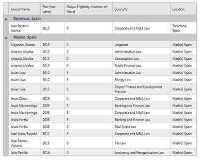clasificación de Best Lawyers en España para 2016, que acaba de publicarse.