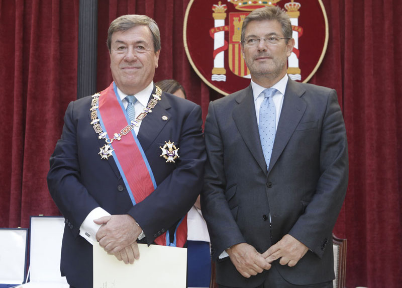 El decano-presidente del Colegio de Registradores de España, Gonzalo Aguilera Anegón, recibió la Gran Cruz de la Orden de San Raimundo de Peñafort de manos del ministro de Justicia, Rafael Catalá Polo.