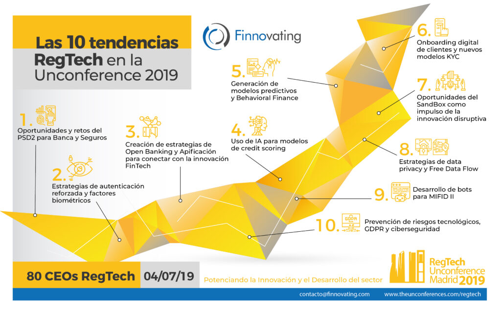 Unos 80 CEOs de RegTech españolas e internacionales se darán cita este jueves 4 de julio en la segunda UnConference que organiza Finnovating, la consultora estratégica de innovación abierta fundada y dirigida por Rodrigo García de la Cruz. En el encuentro se analizarán los últimos datos del sector y entre todos los participantes se pondrán sobre la mesa los retos, oportunidades y obstáculos a los que se enfrentan.