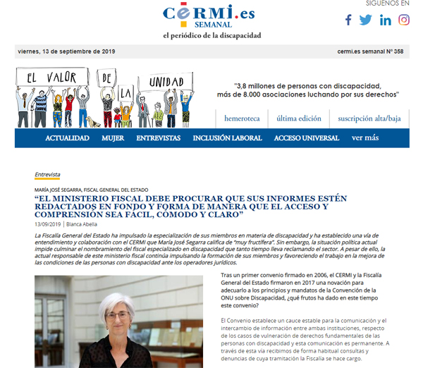 “Este es un reto para el Ministerio Fiscal, que debe procurar que sus informes puedan estar redactados en fondo y forma de manera que el acceso y la comprensión sea fácil, cómoda y clara”, afirma Segarra en una entrevista concedida a la publicación ‘Cermi.es semanal’, que puede leerse íntegramente en este enlace.