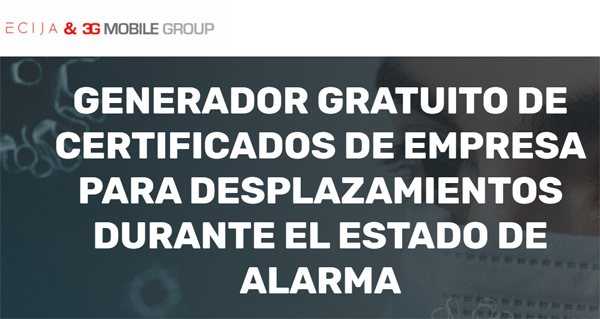 ECIJA y 3G Mobile Goup, bajo sus programas de RSC, proponen una alternativa para poder dar cumplimiento a la norma y evitar así multas por incumplimiento, las cuales oscilan entre los 100 y los 600.000 euros. Con la solución propuesta, empresas, profesionales y trabajadores por cuenta ajena de servicios esenciales podrán certificar de manera electrónica y sin coste su necesidad de desplazamiento por motivos profesionales, en línea con lo expuesto por el Ministerio del Interior y el Consejo de Ministros.
