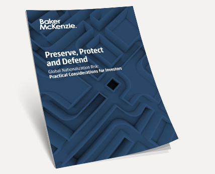 La Firma legal global Baker McKenzie ha desarrollado una guía que describe consideraciones importantes para los inversionistas en caso de enfrentar procesos de nacionalización, y con ello desmentir algunos conceptos erróneos comúnmente relacionados a esta práctica, en una guía titulada, “Preserve, Protect, Defend. Global Nationalization Risk: Practical Considerations for Investors.”