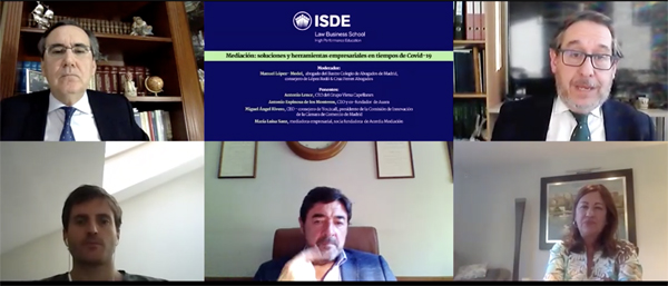 Manuel López-Medel, abogado del Ilustre Colegio de Madrid, y consejero de López Rodo & Cruz Ferrer, actuó como moderador en el seminario virtual convocado por ISDE titulado ‘Mediación: soluciones y herramientas empresariales en tiempos de Covid-19’, donde tres empresarios y una mediadora analizaron los efectos de la pandemia sobres sus negocios, y las posibles medidas que deberán tomar ahora para afrontar la nueva realidad.