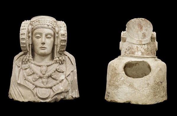 Sin embargo, si Elche es conocida internacionalmente, es por la escultura de la Dama de Elche. Busto único en el conjunto de las estatuas antropomórficas elaborada en piedra caliza, data de entre los siglos V y IV a.C, sin que haya podido fijarse el momento exacto de su creación. Sí se sabe que es de época íbera. Se cree que es el busto seccionado de una estatua mayor por la brusca e irregular segmentación de la parte inferior de la estatua, aunque, como todo en esta obra, no es una opinión pacífica, ya que algunos piensan que el agujero de su parte trasera servía para fijar el busto a una pared.