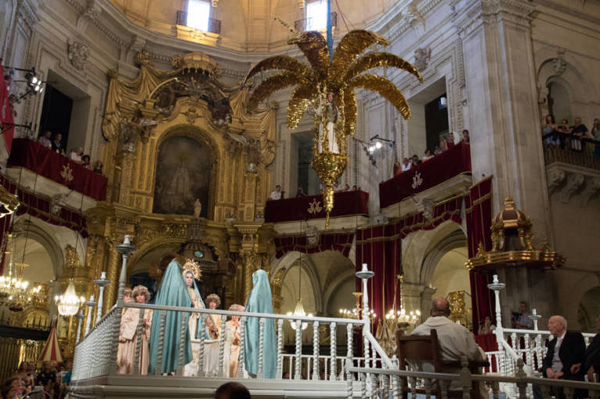 El Misteri fue reconocido en 2001 patrimonio de la humanidad por la UNESCO, un año después de serlo declarado el Palmeral, en la categoría de Obra Maestra del Patrimonio Oral e Inmaterial. Es una representación teatral cantada en llemosí –valenciano antiguo–, dividida en dos actos o jornadas, que se escenifica cada 14 y 15 de agosto en el interior de la Basílica de Santa María. Se representa la Asunción de la Virgen María a los cielos y todos los actores, sin excepción, son hombres, siguiendo la tradición medieval que proscribía la presencia de mujeres en representaciones teatrales.