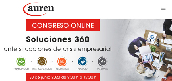 Auren celebrará el próximo 30 de junio el Congreso Soluciones 360 ante situaciones de crisis empresarial, en el que los profesionales de la firma darán respuesta a todas las cuestiones relacionadas con las posibles necesidades de las empresas en estos momentos de incertidumbre.