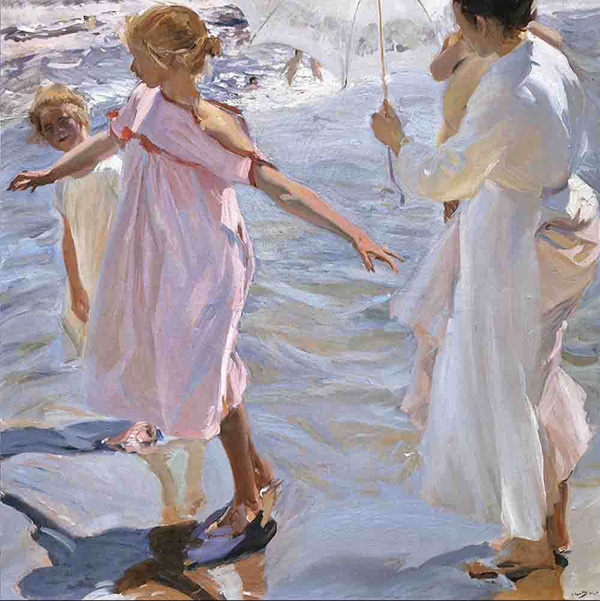 La estrecha relación de Valencia con el agua ha llevado a que sus artistas la hayan tenido muy presente en sus obras. El mar, la playa y la pesca han sido fuente de inspiración para el pintor valenciano más internacional e intimista, Joaquín Sorolla. Encuadrado en el impresionismo, sus obras son exponentes del denominado “luminismo”, corriente que se basa en la captación de la luz a través del uso del blanco en telas y paisajes, y que hacen de Sorolla un pintor con estilo propio, transparente e inconfundible. El uso de la pincelada fluida y amplia, los colores cálidos y brillantes, y las temáticas costumbristas y sociales, le han convertido en un maestro de la pintura, además de muy prolífico, con más de 2.200 obras atribuidas a su pincel. Sorolla no deja indiferente: enamora, acaricia y envuelve, con sus mujeres vestidas de lino mecidas por la brisa marina y sus niños bañados por el agua y el sol.