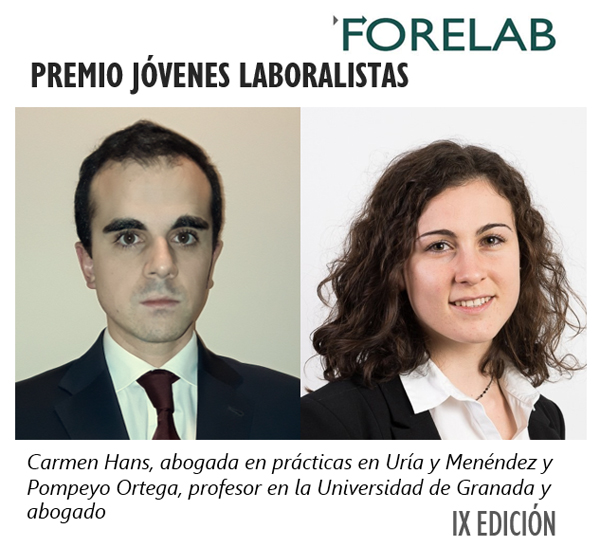 El Foro Español de Laboralistas (FORELAB) ha otorgado el premio Jóvenes Laboralistas en su novena edición, EX AQUEO a Carmen Hans, abogada en prácticas en Uría y Menéndez y a Pompeyo Ortega, profesor en la Universidad de Granada y abogado.