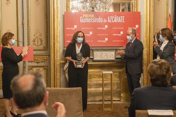 El ministro de Justicia, Juan Carlos Campo, ha hecho entrega del Premio Gumersindo de Azcárate a la Comunidad Iberoamericana de Naciones. El galardón lo ha recogido la secretaria general Iberoamericana, Rebeca Grynspan. El Premio Gumersindo de Azcárate de los registradores se ha concedido, en su X edición, a la Comunidad Iberoamérica de Naciones, que desde su creación en 1991 fomenta la colaboración entre las naciones que la forman en torno a principios y valores compartidos por todos los países que la integran.