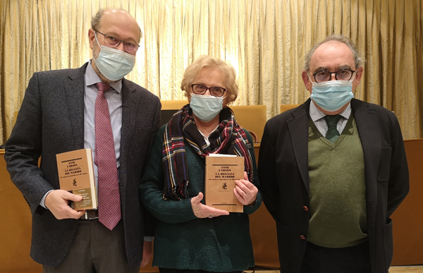 La conferencia fue impartida vía Zoom por Susana Jakfalvi, doctora en Literatura Comparada por la Universidad de Siracusa (Nueva York), quien trató sobre la influencia del tango en la obra de Anne Carson y realizó lecturas parciales de la obra ‘La belleza del marido’.