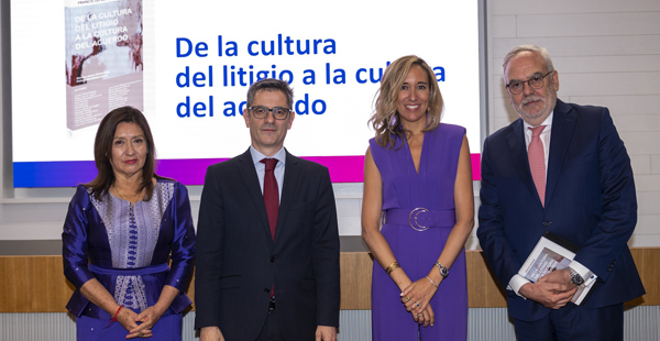 Para Félix Bolaños, la cultura del acuerdo “es cada vez más necesaria y una manera de conseguir grandes resultados y descongestionar los tribunales. Un país que pacta es un país mejor”. Y añadió: “Queremos impulsar la resolución de conflictos sociales y abordar la situación de sobrecarga de los tribunales con la Ley Orgánica de los Métodos Alternativos de Solución de Conflictos”. Por ultimo, se refirió a la obra de Lefebvre como pedagogía para todos los profesionales.