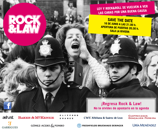 Nueve despachos de abogados líderes en España han vuelto a aunar esfuerzos este año para celebrar un nuevo concierto benéfico de rock en Madrid. En 2011 las firmas participantes han decidido apoyar el proyecto de la Fundación Ciudad de la Esperanza y la Alegría para niños con riesgo de exclusión. Seis bandas de rock, que representan a los despachos Ashurst, Baker & McKenzie, Clifford Chance, CMS Albiñana & Suárez de Lezo, Cuatrecasas Gonçalves Pereira, Freshfields Bruckhaus Deringer, Garrigues, Gómez-Acebo & Pombo y Uría Menéndez, subirán al escenario, el próximo 16 de junio, para ofrecer un espectacular concierto benéfico en una inolvidable y divertida noche de rock. Los fondos recaudados en Madrid se destinarán íntegramente al Proyecto Centro de Día Gaviota de la Fundación Ciudad de la Esperanza y Alegría, cuyo objetivo es proporcionar apoyo escolar a menores en zonas deprimidas del distrito Villa de Vallecas de Madrid. El programa previene y aborda el fracaso escolar y la inadaptación socio-familiar de niños y adolescentes menores de edad ofreciendo alternativas positivas e integradoras en su propio entorno social. El programa interviene con las familias y los niños para mejorar la dinámica familiar y evitar un mayor deterioro social, apoyando a los padres en el proceso socio-educativo de los menores y ofrece un espacio propio con cocina, baño, aulas y sala de informática. La iniciativa Rock & Law nació en Lisboa en el año 2009, cuando varias firmas de abogados de la capital portuguesa decidieron organizar un concierto benéfico en el que tocarían sus propias bandas de música. Ante el éxito cosechado –más de 1.000 asistentes y 20.000 euros de recaudación-, en 2010 se decidió no solo repetir el evento en Lisboa, sino también exportarlo a Madrid. El primer concierto de Madrid se celebró en la sala La Riviera el 17 de junio de 2010 y acogió más de 2.300 personas. El importe recaudado superó los 49.000 euros y se destinó íntegramente al "Proyecto Kostka" de la Fundación Padre Garralda – Horizontes Abiertos, un emocionante programa de voluntariado para apoyar el desarrollo de niños menores de 3 años que viven con sus madres en la cárcel.