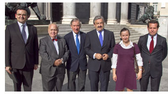 Andrés Ayala, Portavoz de Fomento del Grupo Parlamentario Popular, recibió esta mañana a Elena Fuente, Presidenta de la Agrupación de Afectados, Luis Martí Mingarro, Ex Decano del Colegio de Abogados de Madrid, Manuel Balado, Director de la Cátedra de Ciencias Políticas y Administración y un equipo de letrados de la firma Cremades & Calvo-Sotelo encabezado por Juan Ortiz Úrculo, ex Fiscal General del Estado, que representa a la Agrupación de más de 8.000 Afectados por el Cierre del Espacio Aéreo español los días 3 y 4 de diciembre del pasado año.