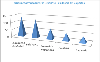 La Comunidad de Madrid (166), el País Vasco (128) y la Comunidad Valenciana (71) son las comunidades autónomas donde más demandas arbitrales se han interpuesto. Sin embargo, en comunidades como La Rioja y Extremadura, los firmantes de contratos arrendaticios apenas recurren a arbitraje.