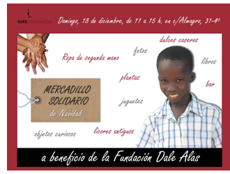 Este domingo 18, de 11 a 15 horas, en la Calle Almagro nº31, se celebrará el I Mercadillo Solidario de Navidad, en beneficio de la Fundación Dale Alas