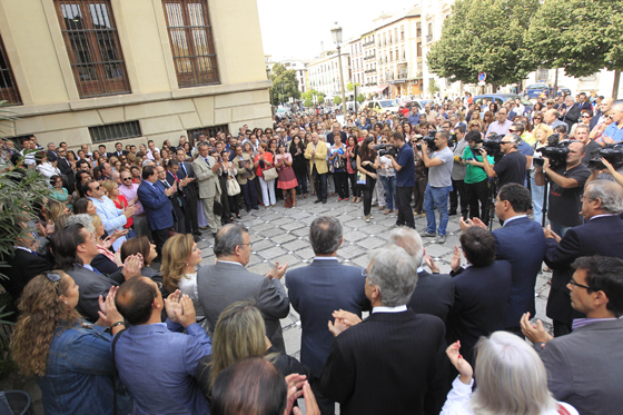 El Colegio de Abogados de Granada ha convocado esta mañana a las 12:00 horas una concentración en memoria de la compañera Rosa Cobo Román. Al acto, en el que se ha guardado un minuto de silencio en honor a la letrada, han acudido el decano, Eduardo Torres, y miembros de la Junta de Gobierno del Colegio, así como varios centenares de profesionales granadinos que han querido dejar patente el gran dolor de la Abogacía por la trágica muerte de una compañera muy querida. A la concentración han asistido también destacados representantes de las esferas política y judicial. Los abogados granadinos han estado acompañados por el fiscal superior de Andalucía, Jesús García Calderón, el presidente de la sala de lo Contencioso-Administrativo del Tribunal Superior de Justicia de Andalucía (TSJA), Rafael Toledano, el presidente de la Audiencia Provincial, José Requena, la fiscal jefe de Granada, Ana Tárrago, la delegada del Gobierno de Andalucía, María José Sánchez, y de varios concejales y parlamentarios granadinos. El Colegio de Abogados ya anunció el pasado viernes que se personará como acusación particular en el caso si se confirma que la “intolerable e injusta” muerte de Rosa Cobo está relacionada con el ejercicio de su profesión. Asimismo, el decano ha asegurado hoy que en la próxima Junta de Gobierno el Colegio estudiará si los abogados deben reforzar su protección personal ante situaciones de amenazas y agresiones.