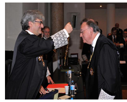 El Presidente del Consejo General de Graduados Sociales, D. Javier San Martín, felicitó a estos tres amigos y compañeros, que por su brillante trayectoria profesional, hoy disfrutan de un merecido reconocimiento, reconfortando las largas horas de trabajo que han desarrollado a lo largo de su vida laboral.