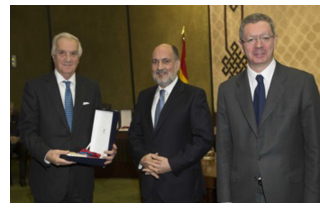 Los Presidentes Eméritos de esta institución reciben la Gran Cruz de la Orden de San Raimundo de Peñafort con la plana mayor de los operadores jurídicos como testigos La Sala de Vistas del Tribunal constitucional acogió la ceremonia de imposición de la Gran Cruz de la Orden de San Raimundo de Peñafort a los Presidentes eméritos del Tribunal Constitucional. Estas seis personalidades recogieron las distinciones en un acto que congregó a la plana mayor de los operadores jurídicos. Así fueron homenajeados : Pedro Cruz Villalón (1998-2001), Álvaro Rodríguez Bereijo (1995-1998) y Miguel Rodríguez-Piñero (1992-1995). Manuel Jiménez de Parga (2001-4) y Maria Emilia Casas (2004-2011). Pascual Sala último presidente hasta la fecha lo recibió en 1996.El acto estuvo presidido por el Presidente del Tribunal Constitucional, Francisco Pérez de los Cobos, y por el Ministro de Justicia, Alberto Ruiz-Gallardón, quien impuso las condecoraciones. Faltaron Manuel Garcia Pelayo, ya fallecido y Francisco Tomás y Valiente, asesinado por ETA hace ya algunos años. En sus palabras, Alberto Ruiz-Gallardón, Ministro de Justicia, citó a Jean Monnet, para señalar que “los hombres pasan, pero las instituciones quedan; nada se puede hacer sin las personas, pero nada subsiste sin instituciones”. Y a continuación resaltó la labor del Tribunal Constitucional y la aportación de cada uno de los ilustres premiados. . Así, a través del tiempo, de sus diferentes composiciones y de sus sucesivos Presidentes, esta Institución ha ensanchado y fortalecido la España de las Libertades. Gracias al Tribunal Constitucional, los derechos fundamentales se constituyen en una categoría real y efectiva, pues presta amparo y protección frente a toda acción que limite o dificulte el ejercicio de los mismos”; comentó en su exposición. También aprovecho para señalar que la actividad de este Alto Tribunal no cesa y con el paso del tiempo tiene un peso específico importante. Recordó que nuestro país tuvo en 1931 con motivo de aquella Constitución un efímero Tribunal de Garantías Constitucionales, cuya primera sede fue el Palacio de Parcent, hoy una de las dependencias del Ministerio de Justicia., para luego señalar que “Afortunadamente, el actual Tribunal Constitucional, como la propia Constitución de 1978, no ha sido un paréntesis en la Historia de España. Muy al contrario: su actividad se ha consolidado. Ahí están los más de 7.000 asuntos que anualmente ingresan y se resuelven, y de los cuales en torno a 250 dan origen a sentencias que se integran en ese cuerpo jurisprudencial que introduce luz y claridad en el ordenamiento jurídico”. A juicio del actual Ministro de Justicia el papel del Tribunal Constitucional es clave en nuestra democracia :” una de las piedras angulares que sostienen la arquitectura de ese Estado social y democrático de Derecho que tiene como valores superiores la libertad, la justicia, la igualdad y el pluralismo político.” Y reconocí que su trabajo no es sencillo ni gratuito. Gallardón recordó la fortaleza de las instituciones con una frase que ya ha quedado para la historia de nuestro país; primero la dijo Felipe de Borbón, luego el Rey Juan Carlos en el discurso de Navidad : “España –que, como nos ha recordado Su Majestad el Rey, “es una gran Nación que vale la pena vivir y querer, y por la que merece la pena luchar”-, y que dispone de los instrumentos necesarios para defender, desde el más estricto respeto a la propia Constitución y a los derechos que en ella se reconocen, esa soberanía nacional que reside en el conjunto de sus ciudadanos. “ Rodríguez Piñero, en nombre de los homenajeados Por razones de antigüedad fue Miguel Rodríguez Piñero, hoy en el Consejo de Estado, quien ya fuera entrevistado por nuestra publicación tras lograr el Premio Pelayo http://goo.gl/WS50oD. En su exposición recordó a los asistentes el valor de órgano constitucional y Tribunal de Justicia del propio Constitucional “El título IX del texto constitucional ha consagrado la posición institucional de este Tribunal como componente fundamental de nuestro sistema constitucional, existente por sí mismo, un órgano supremo en su orden, no vinculado ni subordinado a ningún otro poder del Estado, con competencias específicas, excluyentes y exclusivas, y sólo sometido a la Constitución y a su Ley Orgánica.” Aclaró. También comentó que pese al trabajo de la institución en ciertos asuntos de contenido político, la labor de esta entidad siempre había sido dentro del marco estrictamente jurídico. “Ese grado de desacuerdo se ha acentuado considerablemente en relación con el sistema constitucional de las autonomías territoriales, cuestión que no ha sido entendida, o respetada en ocasiones”. También tuvo tiempo de hablar de la figura del Presidente, fijada en el artículo 160 de nuestra Constitución y como cuestiones como la distribución de asuntos y nombramientos de ponentes es cuestión de este cargo, tal y como sucede en otros regímenes constitucionalistas cercanos al nuestro, siguiendo el tradicional reparto judicial. Sobre la opinión del Presidente, recordó que es importante porque, aunque no lo quiera representa a la institución :” Es difícil una Presidencia silente, porque entre sus funciones está asegurar la “imagen” exterior del Tribunal no sólo en los actos protocolarios sino también en los contactos con los medios de comunicación, en conferencias, publicaciones” .Y comparó su labor en este sentido como un pararrayos “es una alta responsabilidad la de procurar con su ejemplaridad y su buen hacer dar a conocer y contribuir a mejorar la imagen del Tribunal, cuyo buen funcionamiento y buen acierto son indispensables para la gobernabilidad de España.” apuntó Francisco Pérez Cobos, clausuró este act y aprovecho su turno para acercarse a la figura del presidente del Tribunal Constitucional, un cargo que no