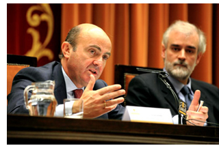 Participa en el Aula de Opinión de Comillas ante más de mil personas El Ministro de Economía, Luis de Guindos, participó en el Aula de Opinión de la universidad con una conferencia titulada "La economía española: balance y perspectivas". El acto, presidido por el Rector, Julio L. Martínez, SJ, y moderado por el Decano de la Facultad de Ciencias Económicas y Empresariales (ICADE), Alfredo Arahuetes, fue seguido por más de mil personas, entre miembros de la comunidad universitaria y alumnos de otras universidades, tanto en el Aula Magna, como en otras salas en las que se proyectó en directo. De Guindos comenzó su intervención recorriendo el camino desde la situación previa a su llegada al Gobierno hasta el momento actual. "El rescate era inminente, nadie confiaba en nosotros", y el país acumulaba numerosos desequilibrios económicos, muchos arrastrados de los tiempos de bonanza, que nos llevaron a una situación insostenible. "No nos han rescatado, pero no hay ningún otro país con nuestra tasa de paro", reconoció. Hoy, "seguimos en crisis, pero hemos salido de la recesión", aseguró. Según sus previsiones, el año 2014 será el primero con crecimiento visible, del 1 por ciento, y creación de empleo. No obstante, "seguimos teniendo enormes desequilibrios, como el endeudamiento privado, la deuda con el exterior o el déficit público". Para resolverlo, "hay que actuar sobre las palancas que permitirán su reducción". Estas áreas de actuación son el aumento de la competitividad, "que ya ha tenido ganancias vía costes laborales"; la eliminación de barreras administrativas y de otro tipo, "somos un país con un corporativismo excesivo", o el proceso de internacionalización de la economía, en el que también hay avances. La parte mala de la crisis, el sufrimiento de tantas familias, es indiscutible dijo el Ministro, pero también hay una parte buena, la que nos permite aprender de nuestras equivocaciones para resolver los problemas. "Hemos cometido muchos errores y excesos, pero la mayoría ya están purgados", sentenció. Además, y antes de terminar su ponencia, hizo un llamamiento a los estudiantes, pidiéndoles su "esfuerzo futuro para sacar la economía de esta situación". Tras la conferencia comenzó el turno de preguntas, en el que los alumnos y otros miembros de la comunidad universitaria expusieron sus dudas al Ministro sobre temas de coyuntura económica, pero también de política general y actualidad. La primera fue sobre la economía sumergida. "¡Qué te va a decir el Ministro de Economía sobre la economía sumergida!", exclamó al responder. Este fenómeno, afirmó, produce una desventaja competitiva, "no pagar no es una ventaja", hacerlo contribuye al interés general, que en este momento pasa por que el país se recupere. Varios alumnos plantearon cuestiones relacionadas con las pensiones, la sostenibilidad y el futuro del sistema. A corto plazo, estos temas pasan por la necesidad de generar empleo y, en el medio plazo, habrá que contar con el efecto de las medidas puestas en marcha, como el retraso en la edad de jubilación, la penalización de la jubilación anticipada y el denominado factor de sostenibilidad. "El sistema de pensiones forma parte del contrato social que nos hemos dado los españoles", afirmó, y, con los ajustes necesarios, puede sostenerse. Fue interpelado, en varias ocasiones, por la deuda pública, lo que aprovechó para alabar el trabajo de su compañero en el Gobierno, el Ministro de Hacienda y Administraciones Públicas, Cristóbal Montoro, que está "poniendo en orden las cuentas". La relación entre la deuda pública y el PIB aún tiene que mejorar pero, en su opinión, los mercados están valorando más la capacidad de crecimiento del país a medio y largo plazo. Preguntado por la reforma fiscal, admitió que en nuestro país se pagan "muchos impuestos" y que, cuando la diferencia entre el tipo impositivo nominal de las grandes empresas y el que luego pagan es tan grande, "algo debe hacerse". Antes de ser Ministro, De Guindos tuvo un papel relevante en el sector financiero, por lo que uno de los alumnos le interrogó por la burbuja crediticia. Esta anomalía, respondió, se produjo por unos tipos de interés demasiado bajos durante demasiado tiempo, lo que hizo que se perdiera la percepción del riesgo. La gestión de las cajas de ahorro y la situación de las entidades nacionalizadas centraron otra serie de preguntas. "Aquí no se han rescatado los bancos, sino a los depositantes", aseguró con rotundidad. La banca nacionalizada se dirige ahora de forma más profesional, añadió, "yo no me meto en la gestión, he buscado a gestores responsables". Muy crítico con el gobierno corporativo previo a la crisis, mostró su descontento con las pensiones e indemnizaciones de algunos directivos, o con productos como las preferentes. Sobre el caso concreto de Bankia y su eventual privatización, no tuvo dudas: "Es nuestra obligación recuperar la inversión del fondo de rescate a la banca". "Estoy seguro de que Bankia nos va a dar sorpresas muy pronto", añadió.