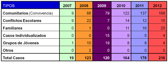 Casos trabajados por la Unidad de Mediación desde 2007 (Fuente propia)